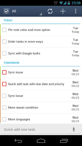 GTasks is a simple and efficient android to do list app. It help you to organize your life in a simple and elegant way. It has both local mode and google account mode.